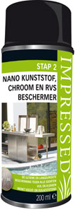 Directions for use: Shake well before use. Ensure the surface to be treated is clean and dry. Use STeP 1 – IMPRESSED® plastics, chrome and stainless steel cleaner for this purpose. Spray the product onto the surface and rub in, using circular movements and a dry and clean cotton cloth, so that the protector is absorbed deeply into the pores of the material. For best results leave to dry for at least five minutes. Finally, polish the treated surface with the dry and clean cotton cloth.